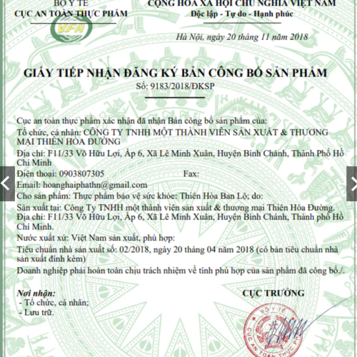 Xuất xứ: Việt Nam Công ty CNHH một thành viên Thiên Hoà Đường Giới thiệu: • Thiên Hoà Ban Lộ không những các bệnh ban ở trẻ em mà còn hỗ trợ cho người lớn với các chứng do khí hậu và do chế độ ăn uống gây ra như: nóng gan, thân nhiệt khô khát, đỏ mắt ù tai, mụn nhọt, táo bón tiểu vàng, biếng ăn, mất ngủ, khô khan mệt mỏi sau khi uống rượu…