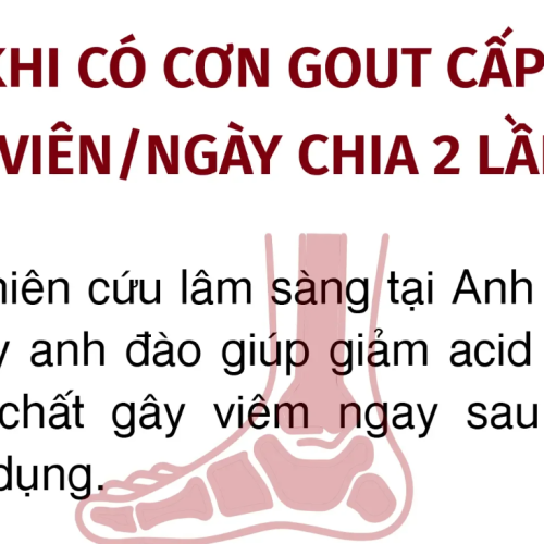 - Khi hết cơn gout cấp: uống 2 -3 viên/ ngày để giảm và duy trì ổn định acid Dùng mỗi tháng một đợt từ 10-15 ngày, liên tục từ 3-6 tháng